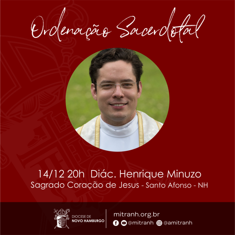 Na sexta-feira, 14 de Dezembro acontecerá a Ordenação Sacerdotal do Diácono Henrique Minuzo, na Paróquia Sagrado Coração de Jesus – Novo Hamburgo. 1. Henrique Lysyk Minuzo, nascido em Novo Hamburgo