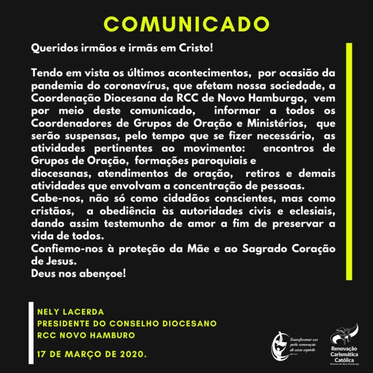 Diante da pandemia do Covid-19, o novo coronavírus, a Conferência Nacional dos Bispos do Brasil (CNBB), em comunhão com o Papa Francisco no compromisso de intensificar as orações neste período,