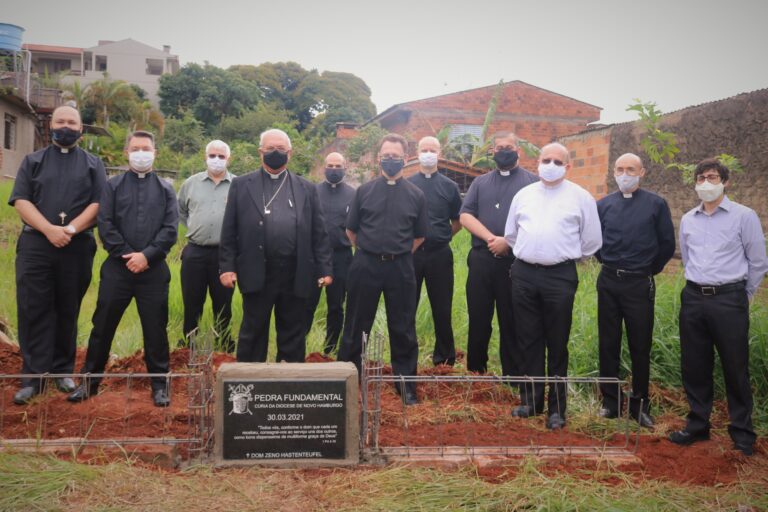 Na manhã desta terça-feira (30), no dia em que foi instalada a Diocese de Novo Hamburgo, em 1980, o bispo diocesano Dom Zeno Hastenteufel e alguns padres ( Pe. Jeferson,