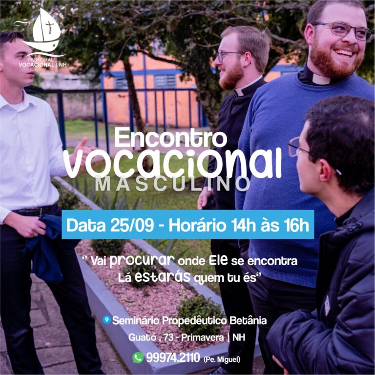 Está escutando jovem?É o Senhor Ressuscitado te chamando para o próximo recolhimento masculino no seminário Propedêutico Betânia.Será no sábado dia 25/09 às 14h ????Rua Guató,77 Bairro Primavera em NH.Para meninos
