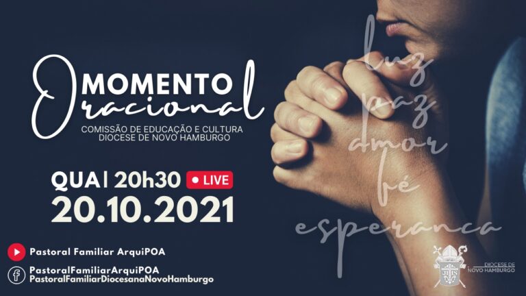 A Comissão de Educação e Cultura da Diocese de Novo Hamburgo convida:Momento Oracional Momento luz com paz, amor, fé e esperançaData: 20/10/2021Hora: 20:30 Como assistir:FaceBook da Pastoral Familiar da Diocese