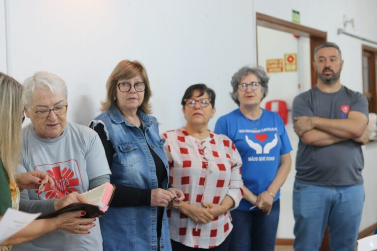 Hoje, na Catedral São Luiz, aconteceu o retiro das equipes de Cáritas paroquiais. Servir ao Senhor naqueles que mais precisam das carícias misericordiosas do Senhor exige mais que estruturas humanas