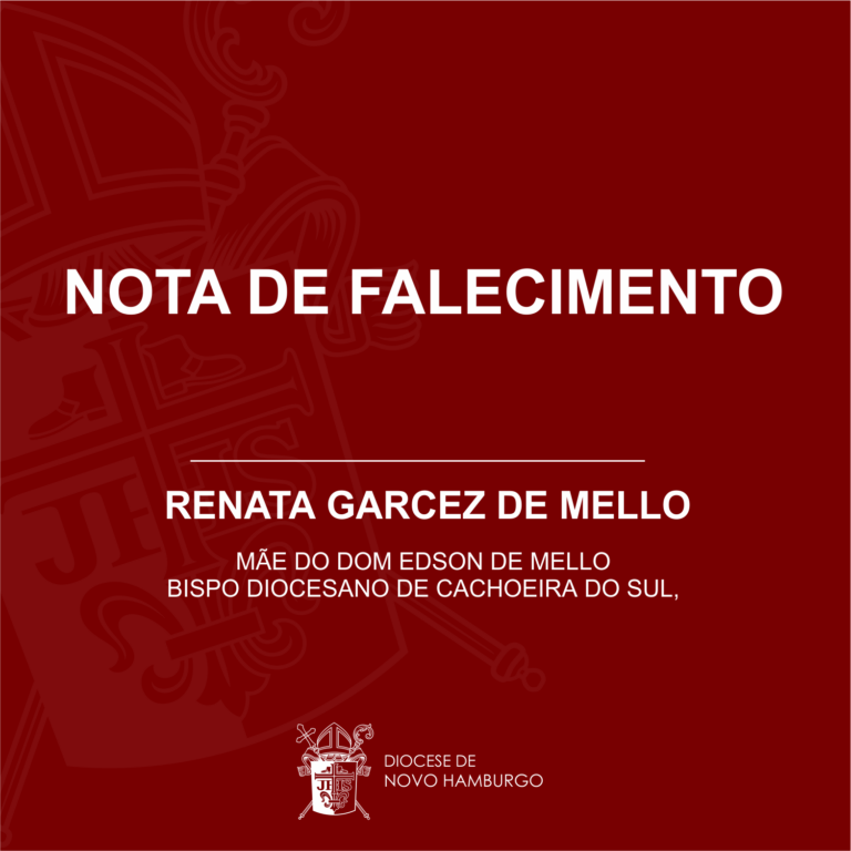 Com profundo pesar e grande esperança no céu, comunicamos o falecimento da senhora Renata Garcez de Mello, mãe do Dom Edson de Mello, bispo diocesano de Cachoeira do Sul. Dona
