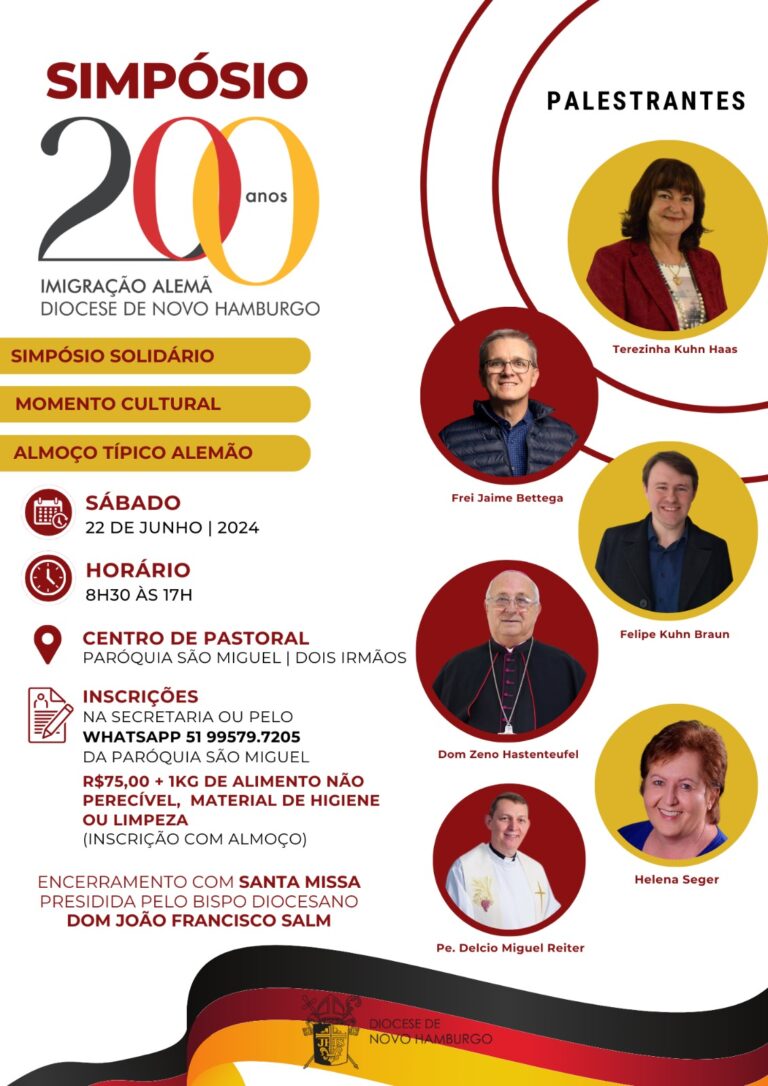 Simpósio diocesano do bicentenário da imigração alemã Inscrições na secretaria da Paróquia São Miguel de Dois Irmãos/RS WhatsApp: 51 995797205
