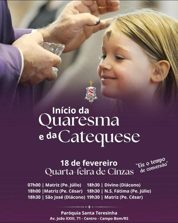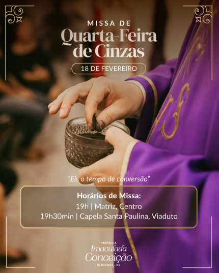 A Igreja inicia, nesta quarta-feira, com a celebração da Quarta-feira de Cinzas, o tempo da Quaresma, um período de 40 dias de preparação espiritual para a Páscoa. É um tempo marcado pelo convite à conversão, vivida por meio da oração, do jejum e da caridade, fortalecendo nossa caminhada de fé.