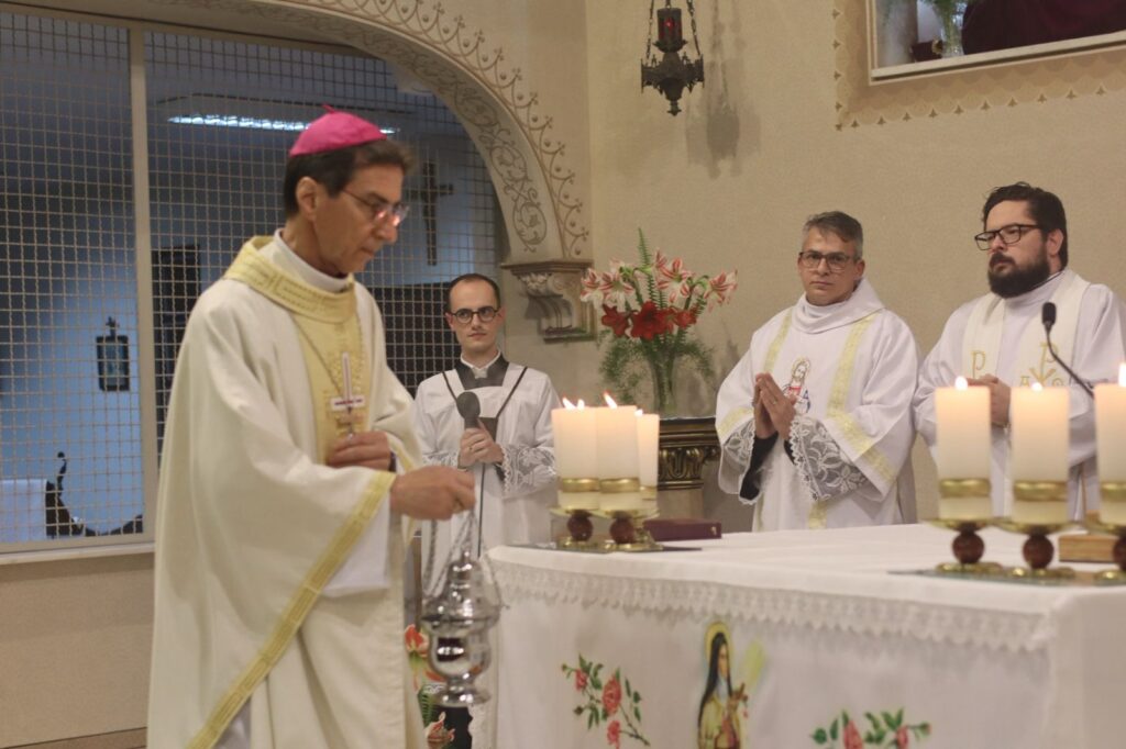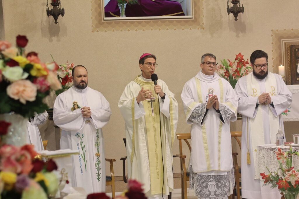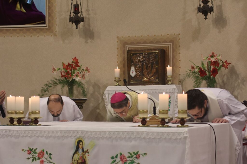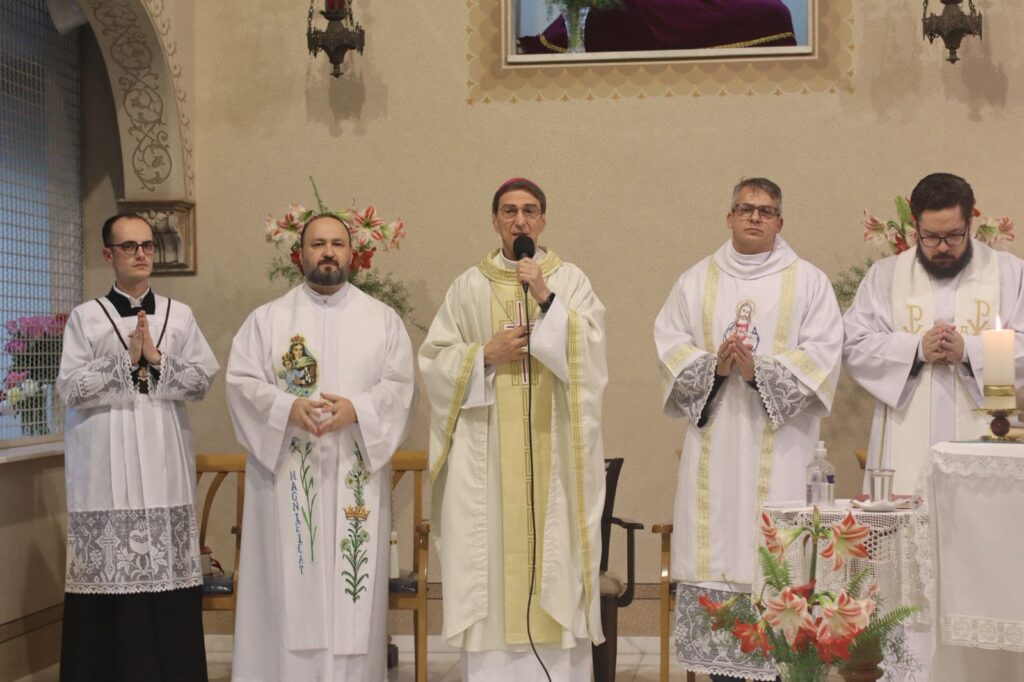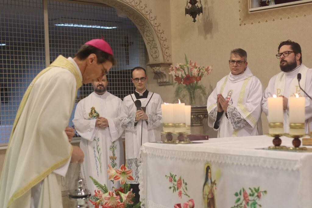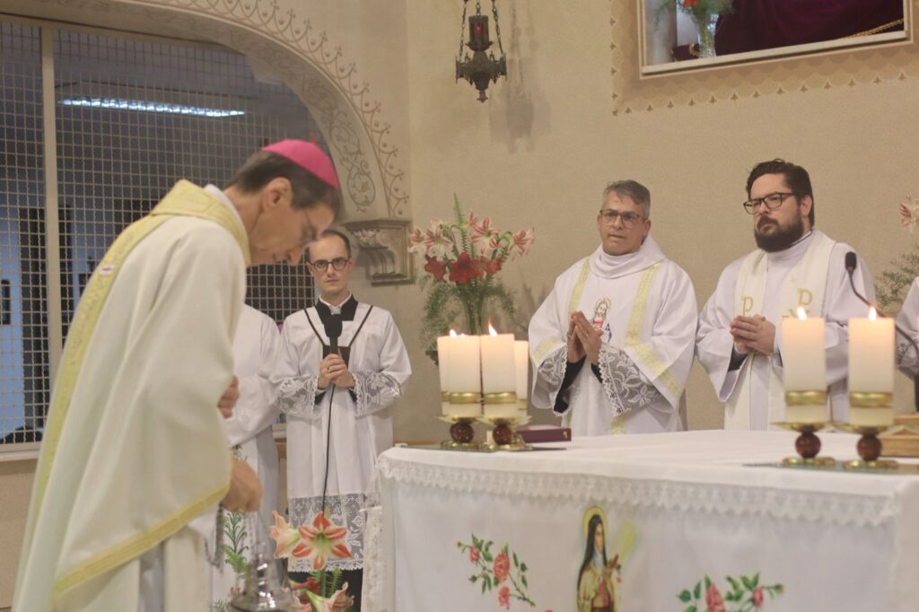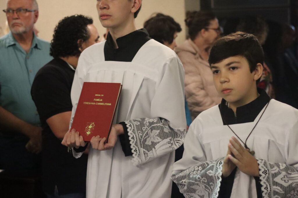 A celebração foi presidida pelo nosso Bispo Diocesano, Dom João Francisco Salm, e concelebrada pelos padres Marco Antônio Leal e Henrique Minuzo, com a assistência do diácono André. O canto litúrgico foi conduzido pelas Irmãs do Carmelo, e as leituras proclamadas por membros da Terceira Ordem.
