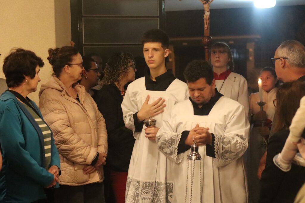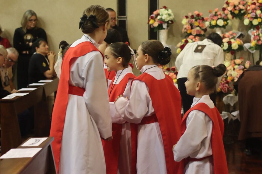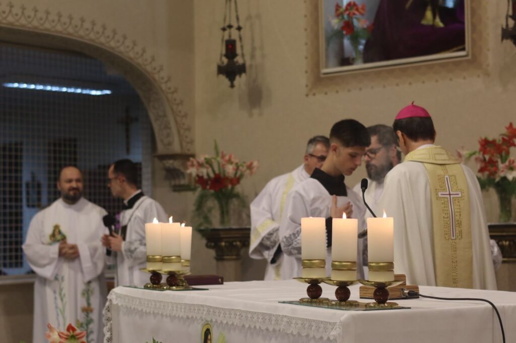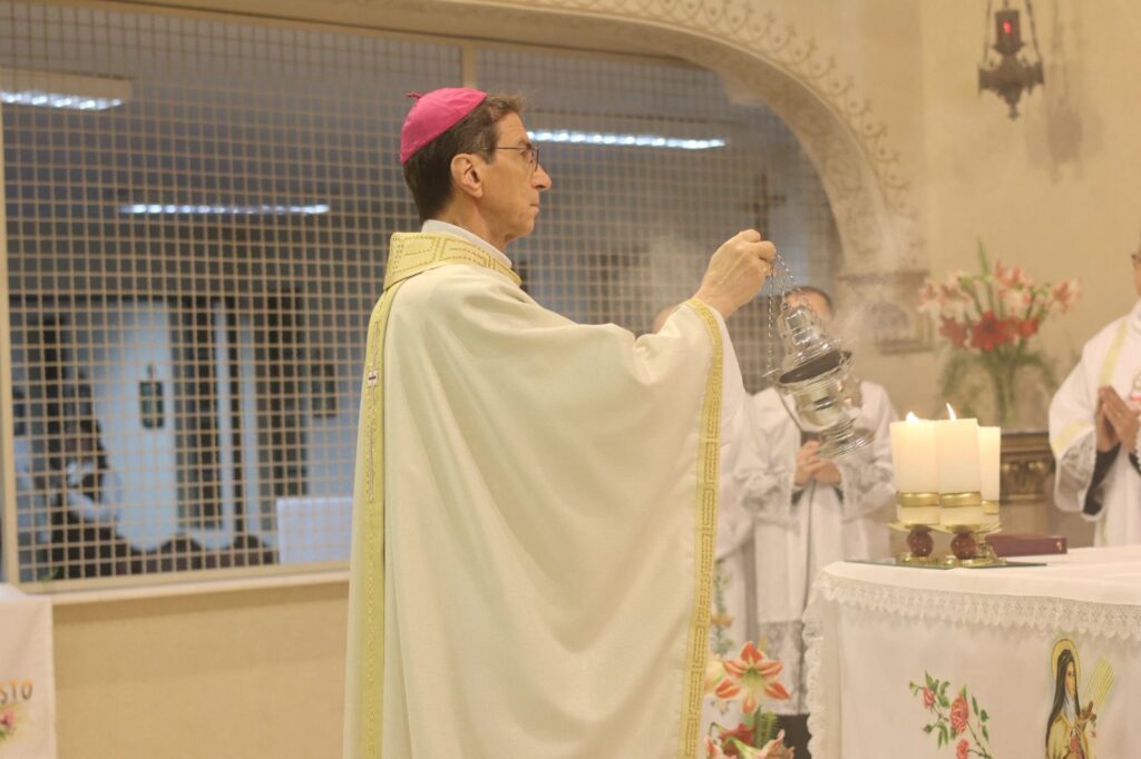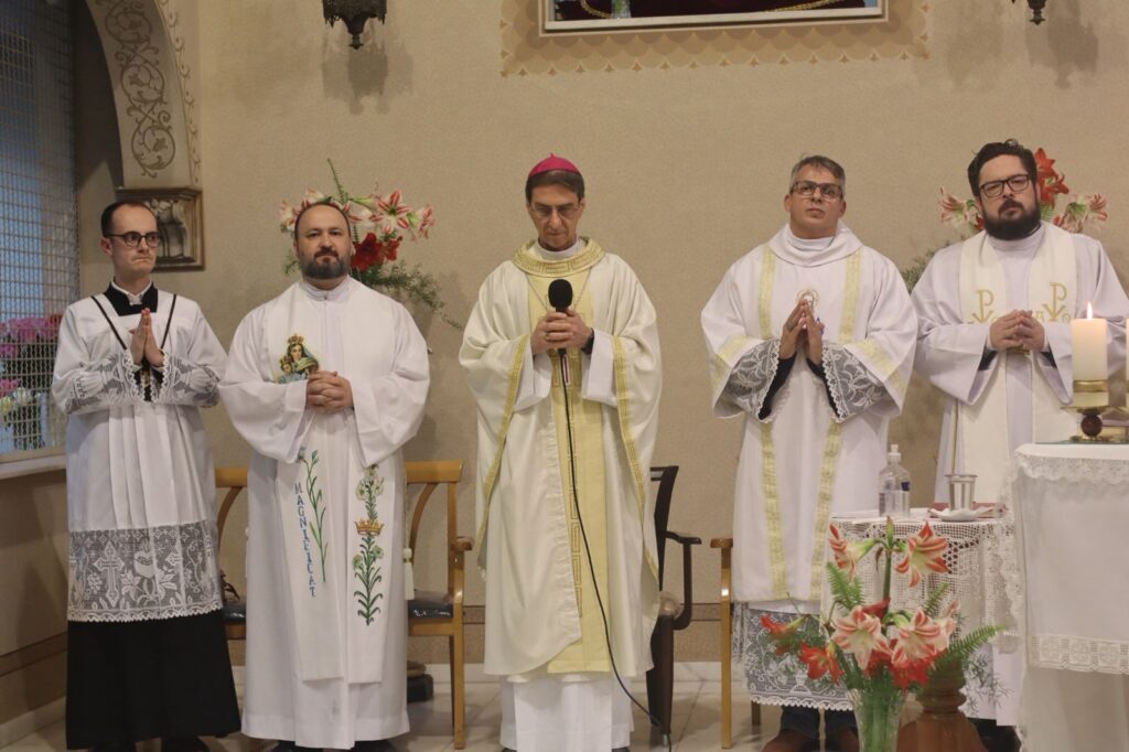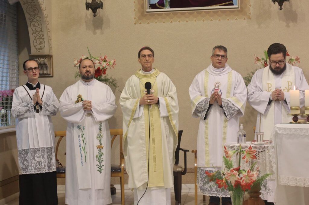 A celebração foi presidida pelo nosso Bispo Diocesano, Dom João Francisco Salm, e concelebrada pelos padres Marco Antônio Leal e Henrique Minuzo, com a assistência do diácono André. O canto litúrgico foi conduzido pelas Irmãs do Carmelo, e as leituras proclamadas por membros da Terceira Ordem.