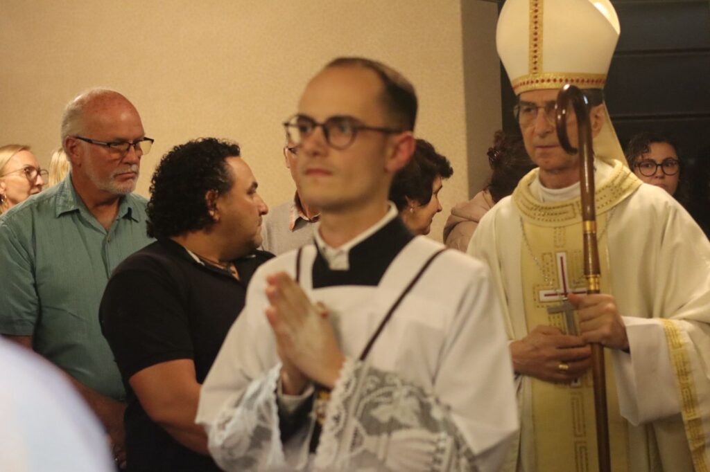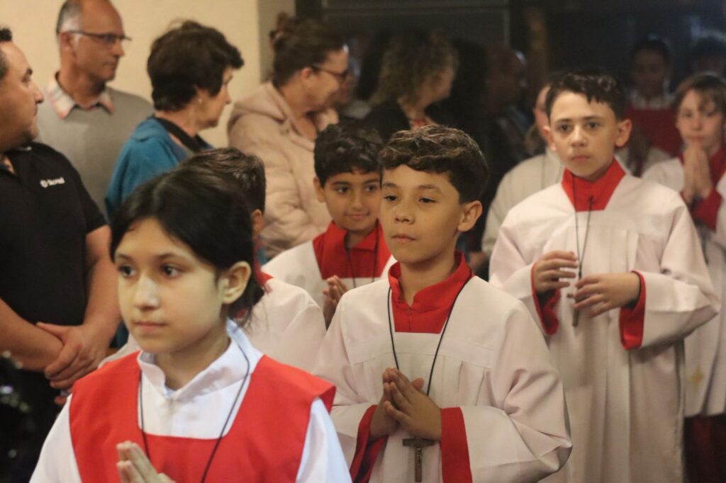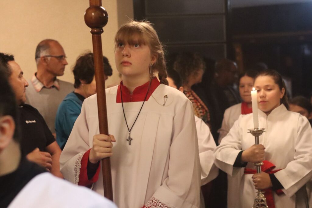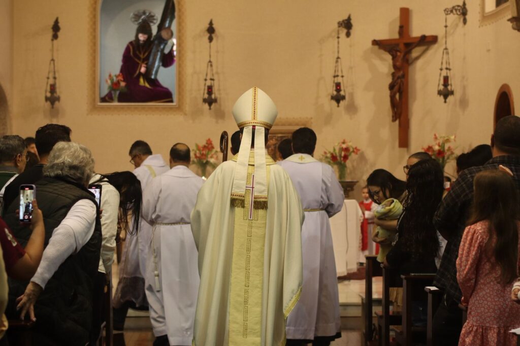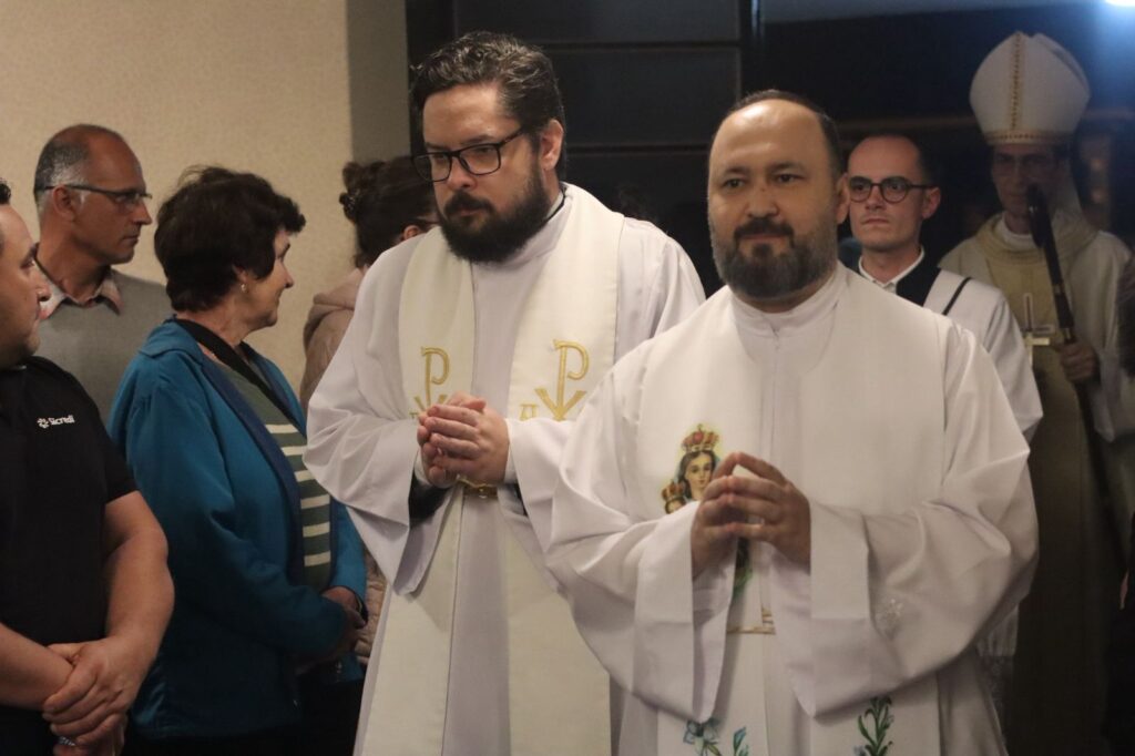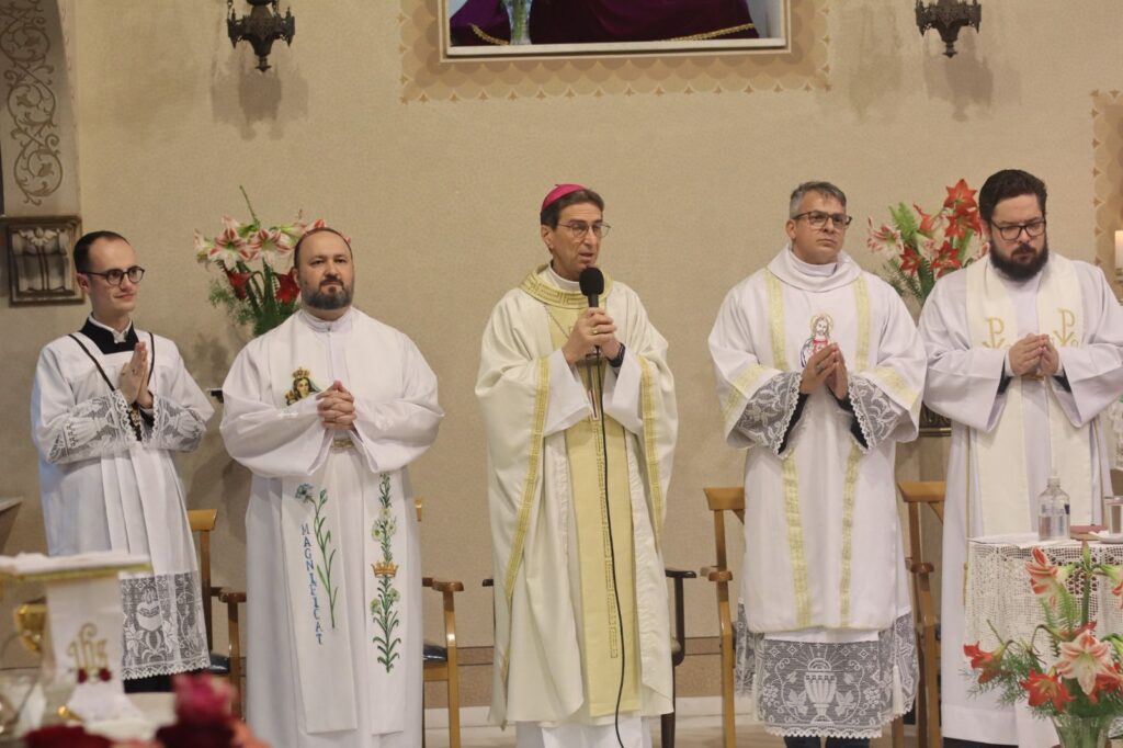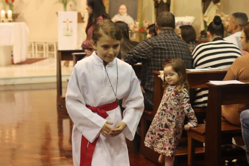 A celebração foi presidida pelo nosso Bispo Diocesano, Dom João Francisco Salm, e concelebrada pelos padres Marco Antônio Leal e Henrique Minuzo, com a assistência do diácono André. O canto litúrgico foi conduzido pelas Irmãs do Carmelo, e as leituras proclamadas por membros da Terceira Ordem.
