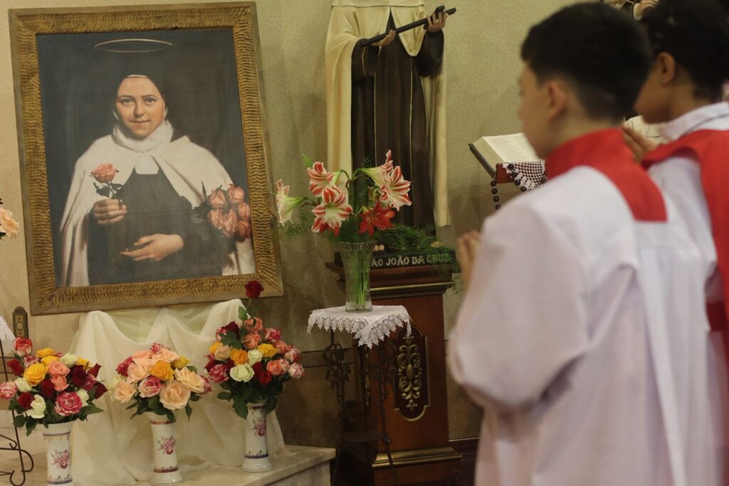 Na manhã desta quarta-feira, 1º de outubro, festa de Santa Teresinha do Menino Jesus, foi celebrada a Santa Missa no Carmelo Nosso Senhor dos Passos. A Eucaristia, marcada pela devoção e espiritualidade da “pequena via”, reuniu inúmeros fiéis e devotos da santa.