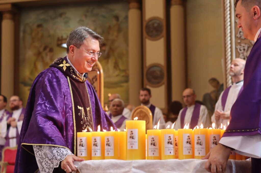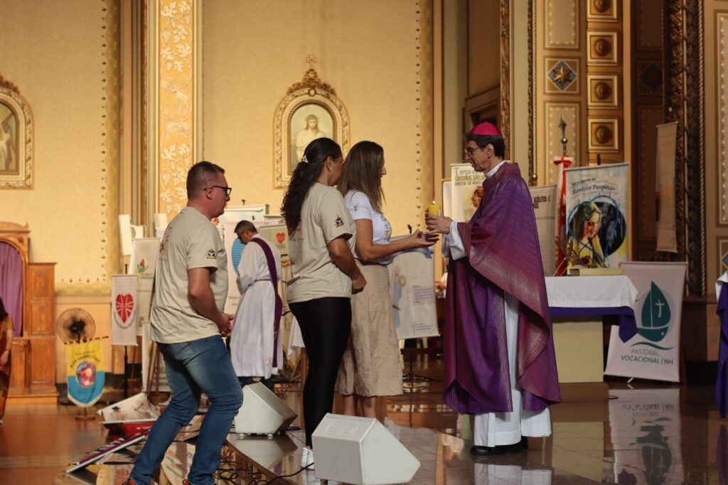 Durante a celebração, ocorreu a entrega simbólica da vela e da água benta às paróquias da Diocese. O gesto expressa a unidade da caminhada pastoral e o envio missionário para que cada comunidade, em seu território, continue sendo sinal da luz de Cristo e instrumento da graça de Deus.