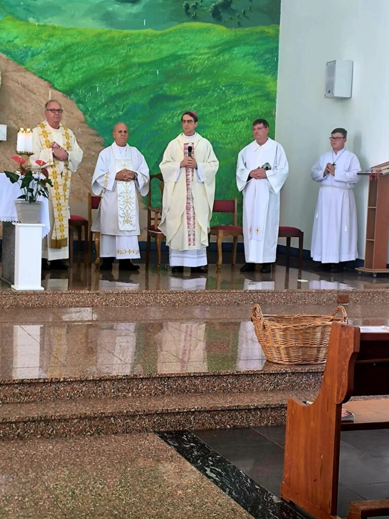 O encontro foi encerrado com a Santa Missa presidida por Dom João, bispo diocesano, coroando o dia com gratidão e bênçãos.