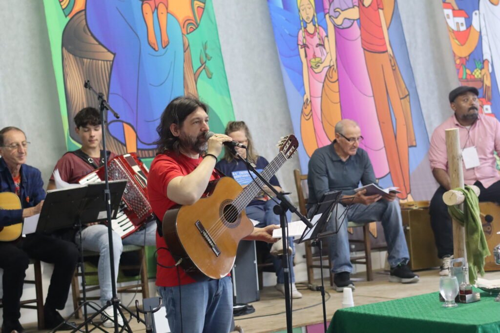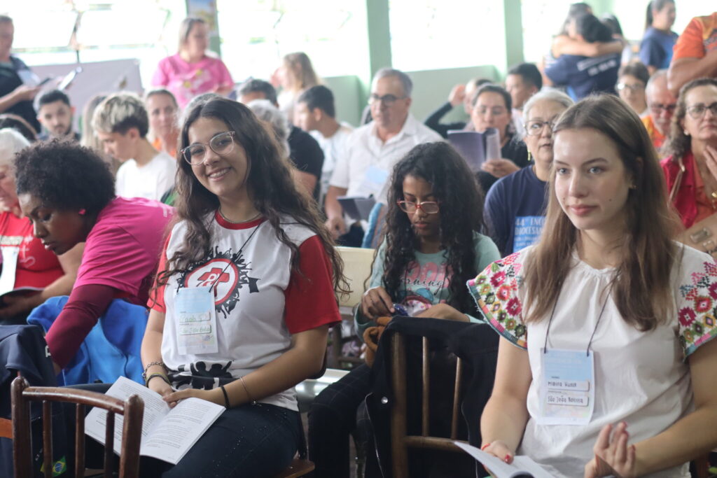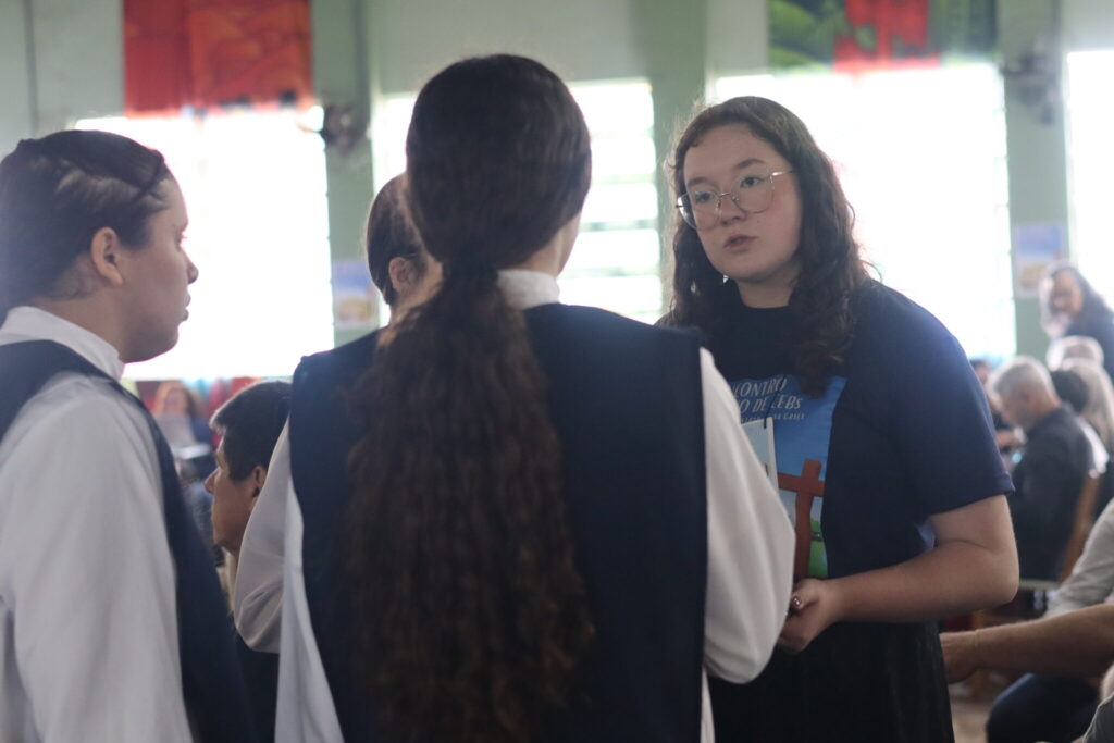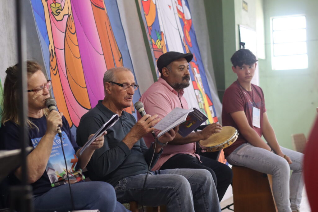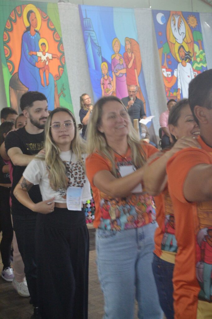 A programação iniciou às 8h com momento de oração e acolhida, seguiu com partilha de experiências, oficinas e atividades culturais, e encerrou às 17h com a celebração e envio dos participantes.