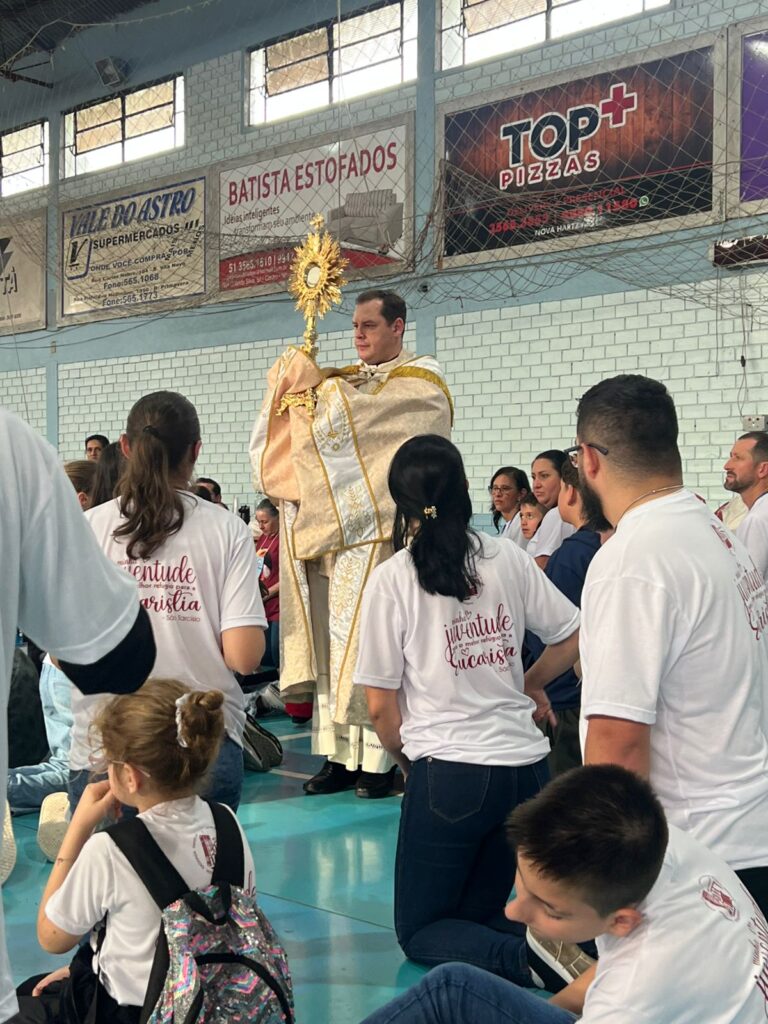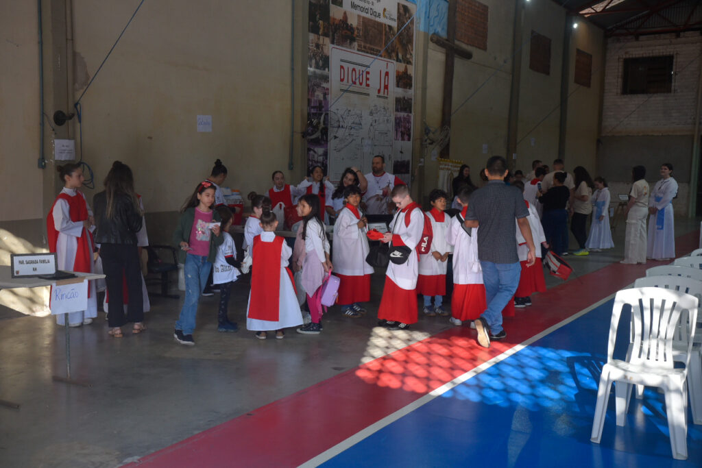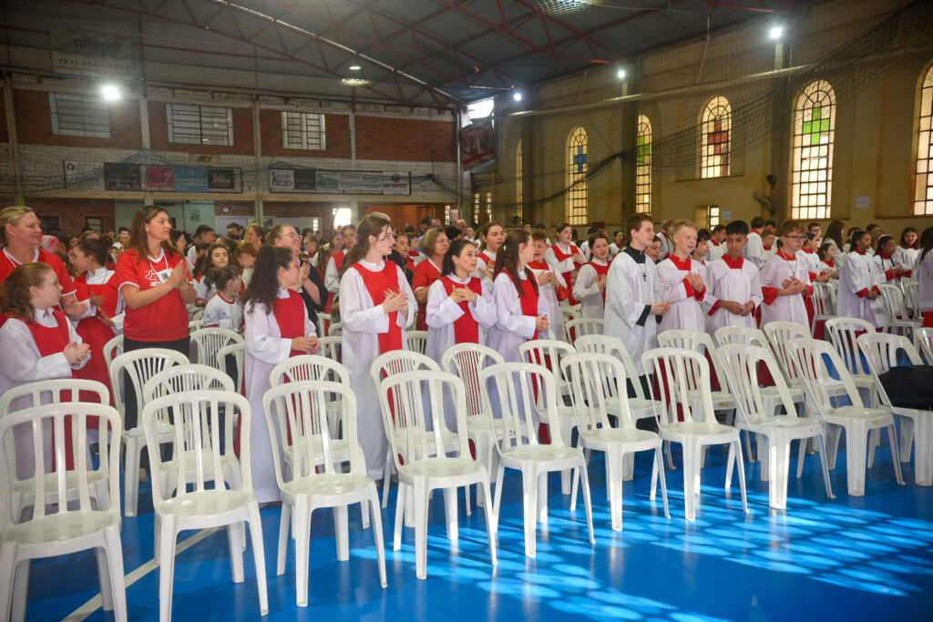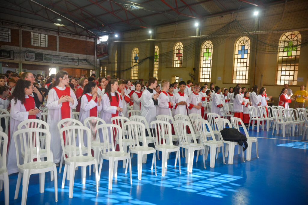 Neste domingo, aconteceu o Encontro Diocesano de Coroinhas da Área Pastoral São Tarcísio, que abrange as regiões de São Leopoldo, Novo Hamburgo e Dois Irmãos. O evento contou com a participação de aproximadamente 490 coroinhas e cerca de 250 tios e acompanhantes, em um dia marcado por alegria, espiritualidade e convivência fraterna.