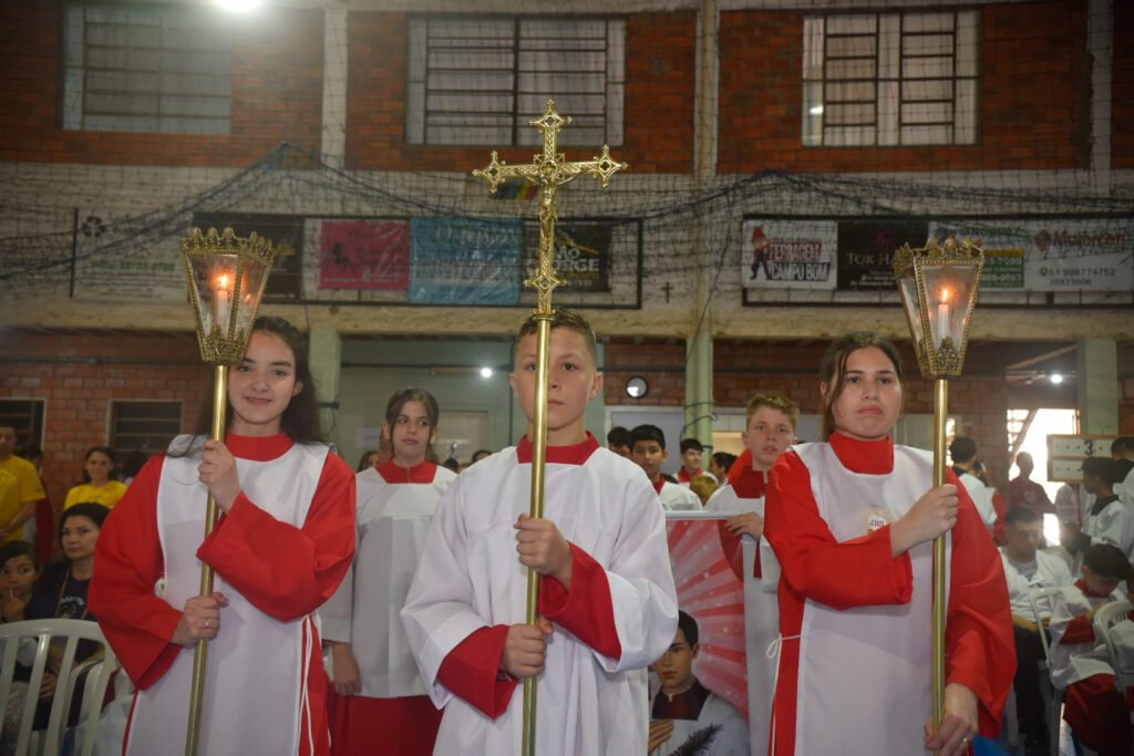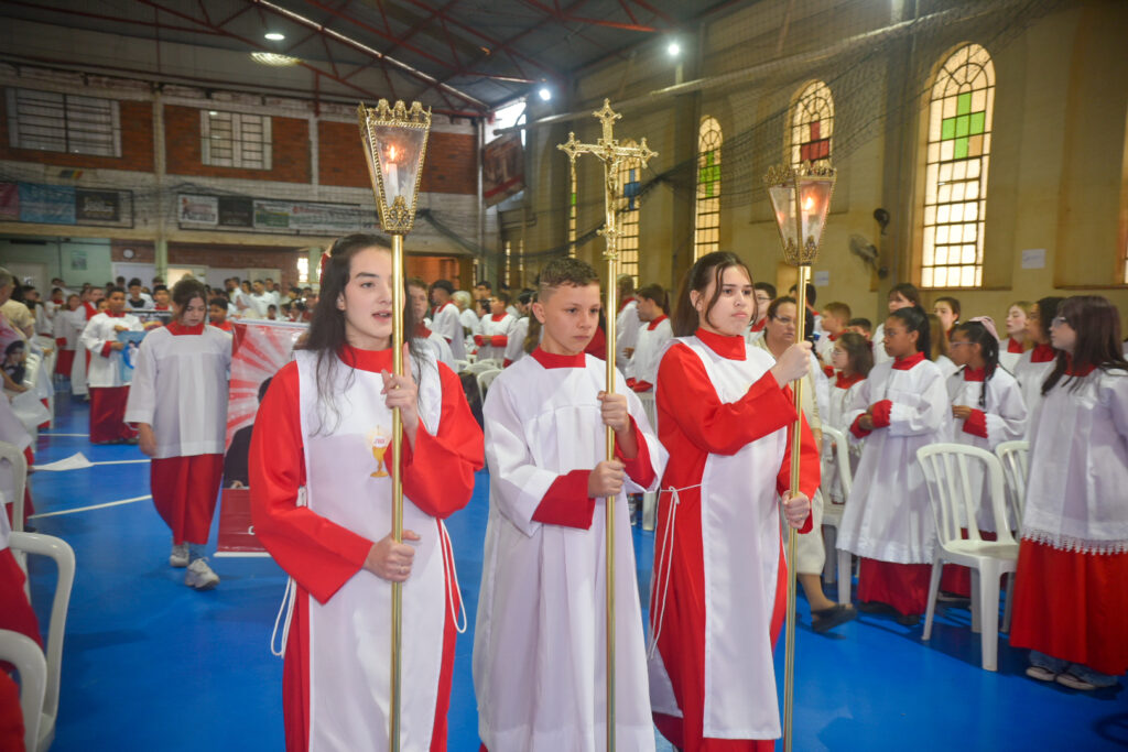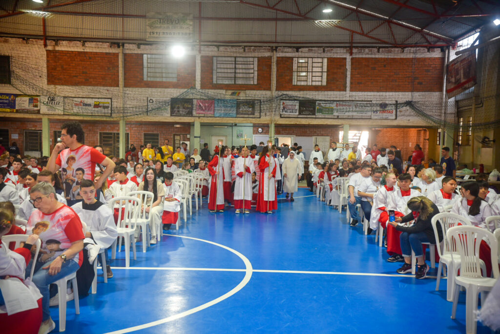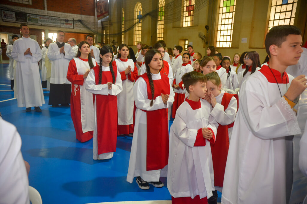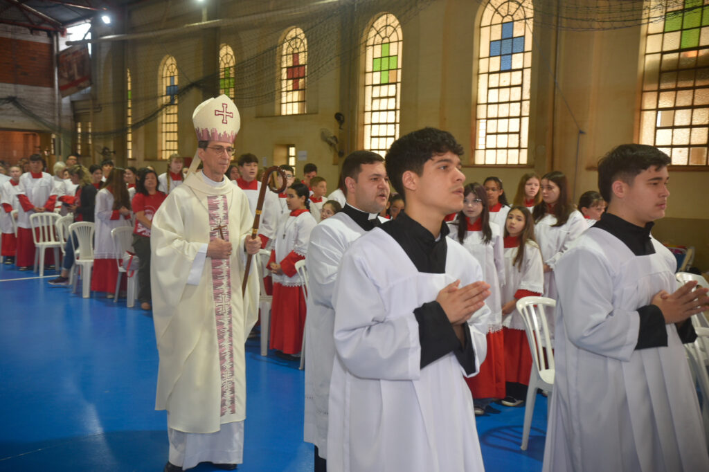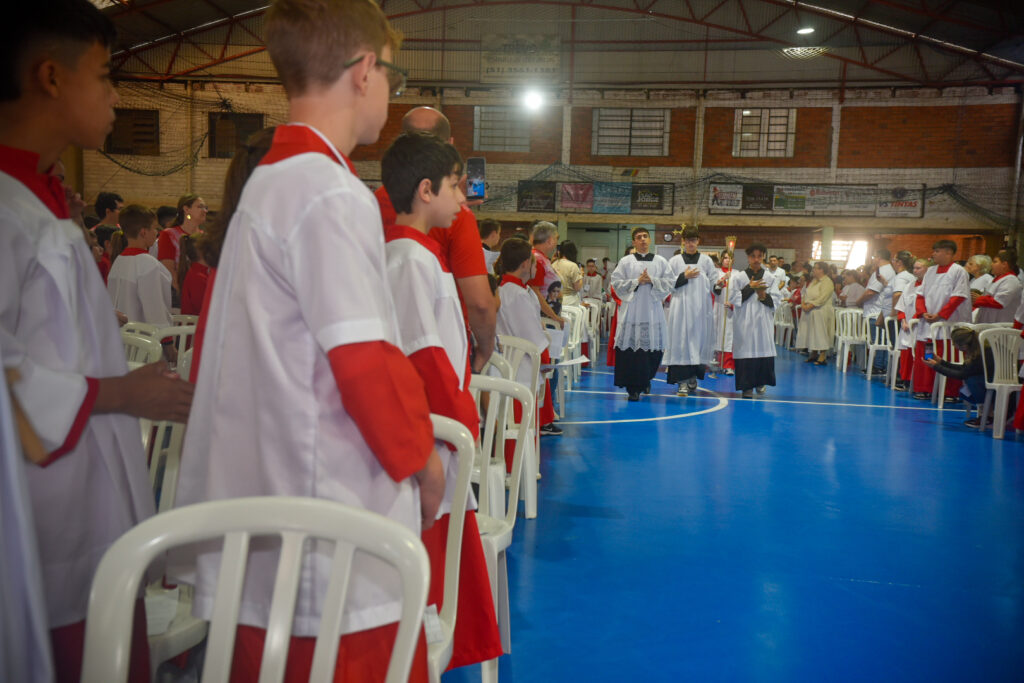A programação iniciou com a Santa Missa presidida por Dom João Francisco Salm, bispo diocesano, que dirigiu palavras de incentivo e gratidão aos servidores do altar, destacando a importância do serviço litúrgico como expressão do amor a Deus e à Igreja.