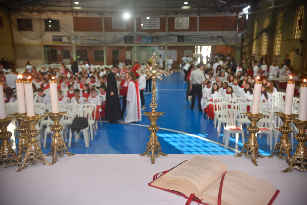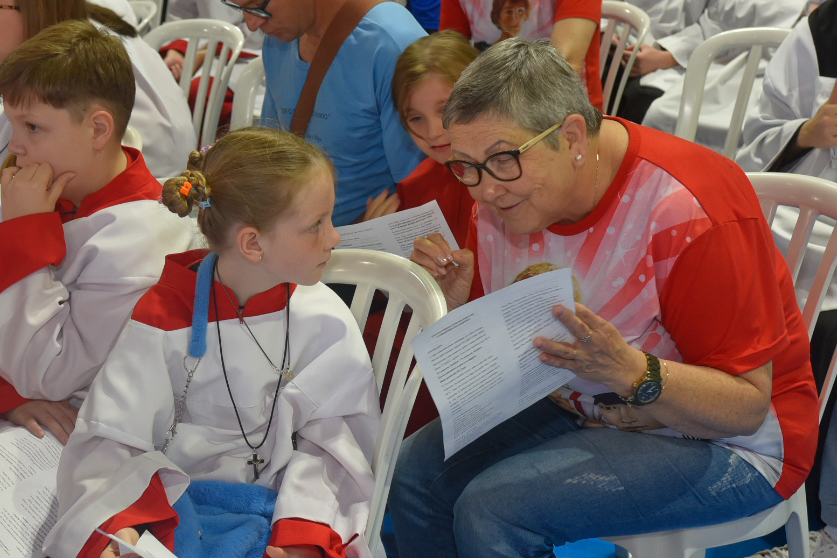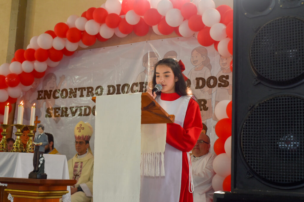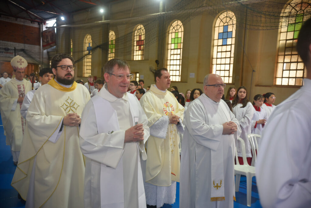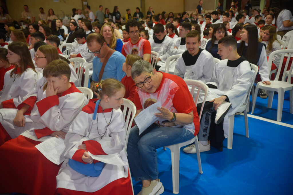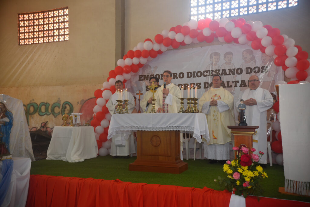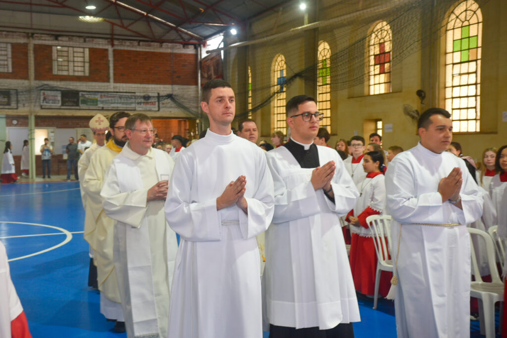 A programação iniciou com a Santa Missa presidida por Dom João Francisco Salm, bispo diocesano, que dirigiu palavras de incentivo e gratidão aos servidores do altar, destacando a importância do serviço litúrgico como expressão do amor a Deus e à Igreja.