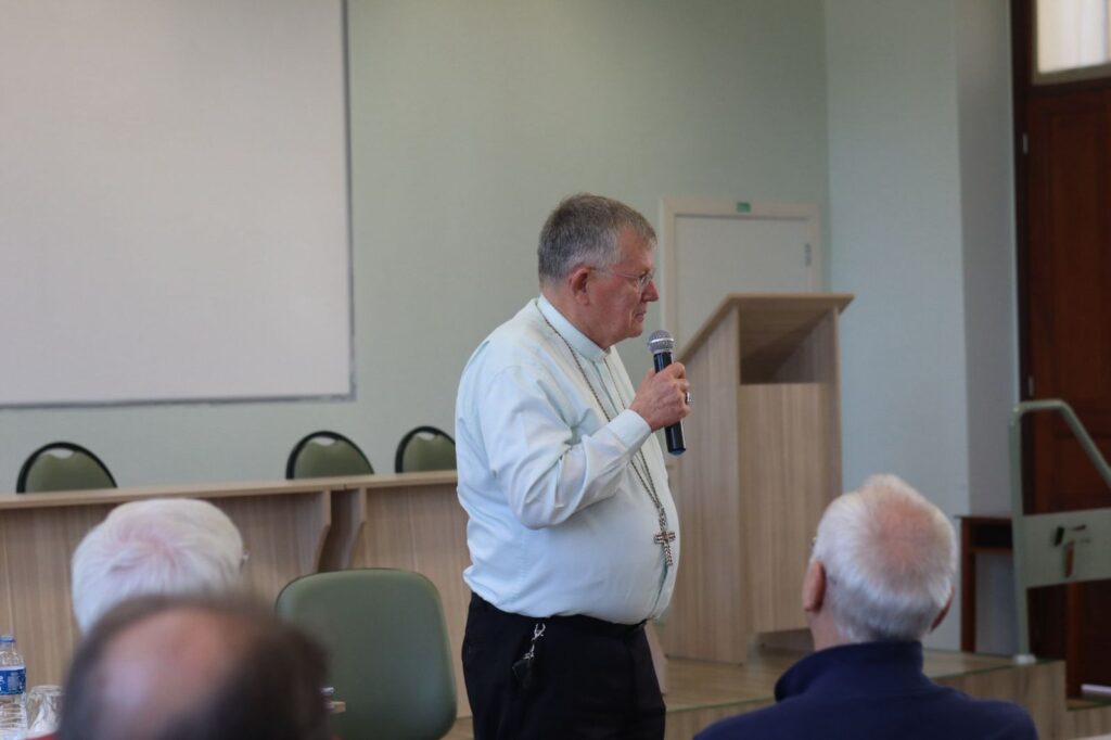 No período da tarde, o Pe. Everson Lino Rodrigues – pároco da paróquia Nossa Senhora da Piedade, em Novo Hamburgo (RS) – apresentou uma formação sobre temas atuais da administração e gestão eclesial, oferecendo aos presbíteros subsídios práticos para a vida paroquial. O encontro foi encerrado com um momento de oração e ação de graças.