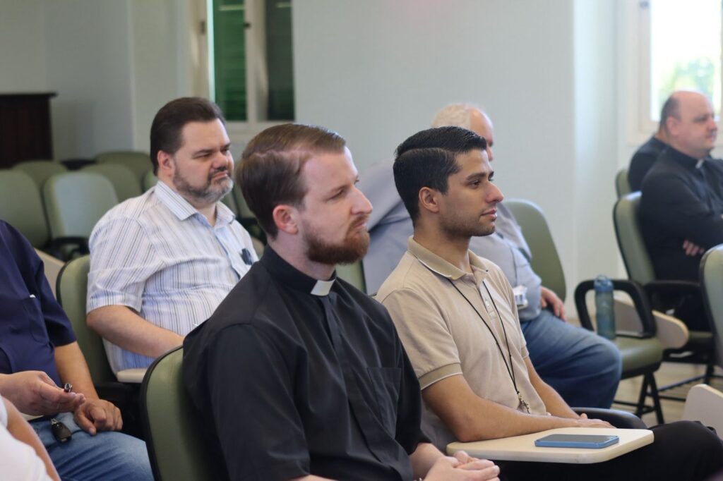 Na quarta-feira (15), as atividades também dedicam especial tempo à oração, mas compreendem uma dinâmica formativa diferente: os padres puderam escolher entre diferentes oficinas temáticas, com número restrito de participantes. A primeira, sobre “Temas atuais da moral”, foi assessorada pelo Pe. Talis Pagot, do clero de Porto Alegre e professor de Teologia Moral na PUCRS. A segunda oficina abordou o Direito Matrimonial, com ênfase na entrevista pré-matrimonial e no encaminhamento de processos de nulidade, conduzida pelo Pe. Maikel Herold, também do clero de Porto Alegre e doutor em Direito Canônico.