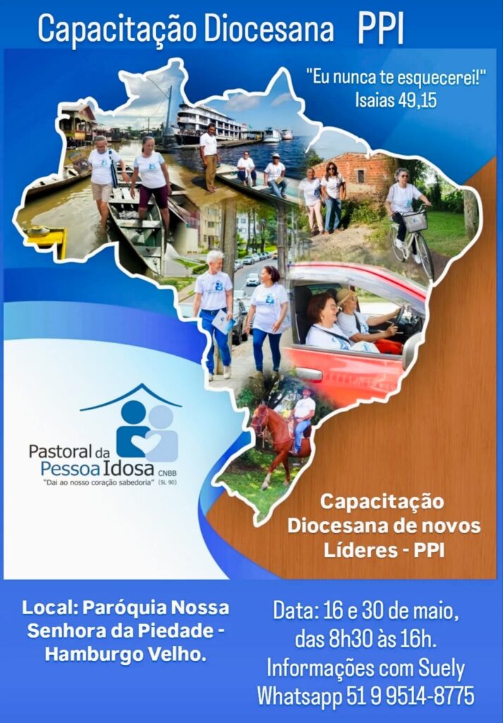 A Pastoral da Pessoa Idosa da Diocese de Novo Hamburgo realiza, nos dias 16 e 30 de maio, a Capacitação Diocesana, um importante momento de formação, partilha e fortalecimento da missão junto aos idosos nas comunidades.