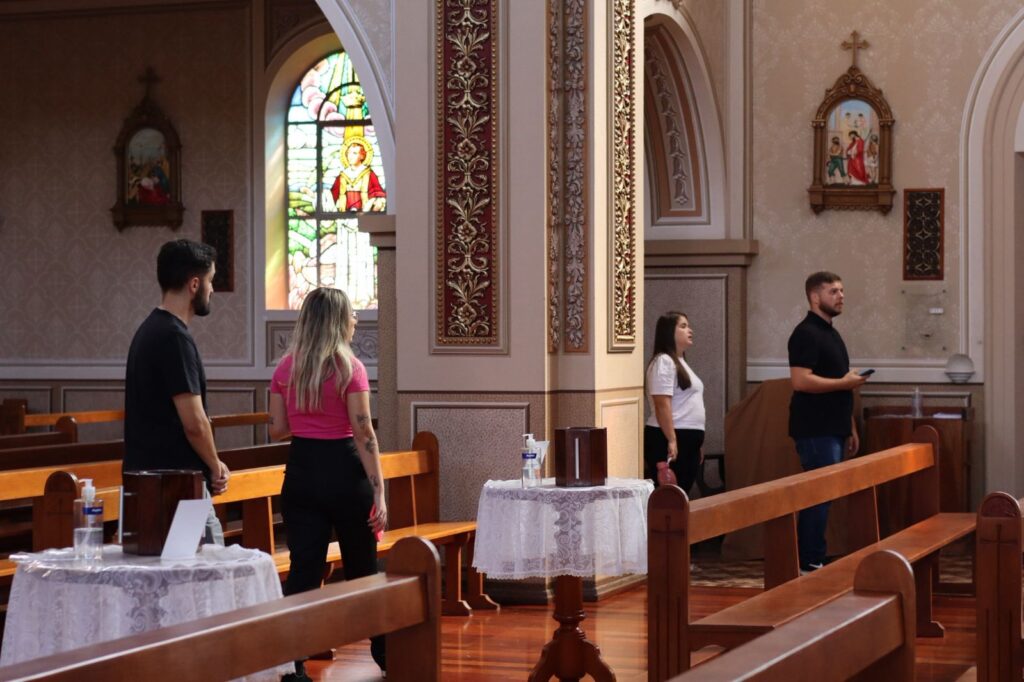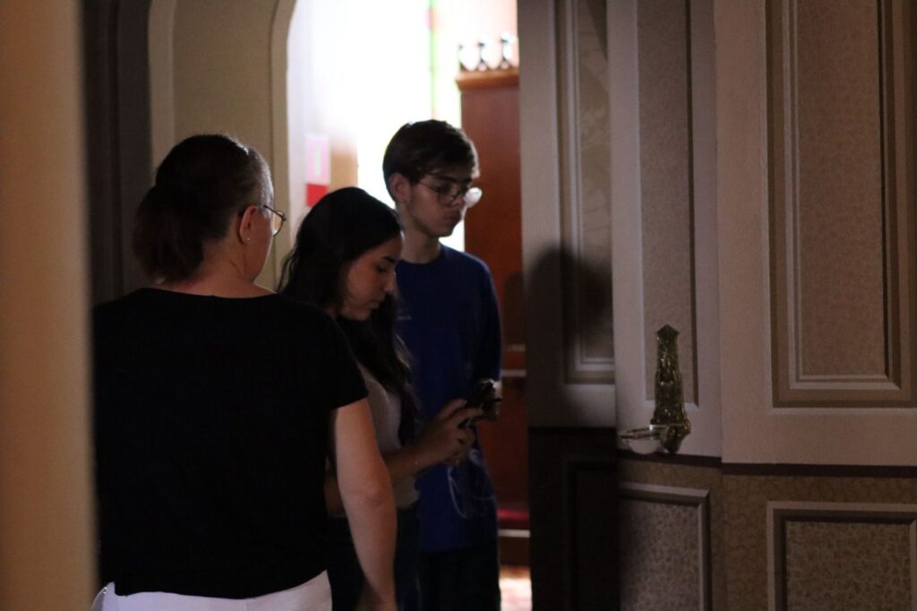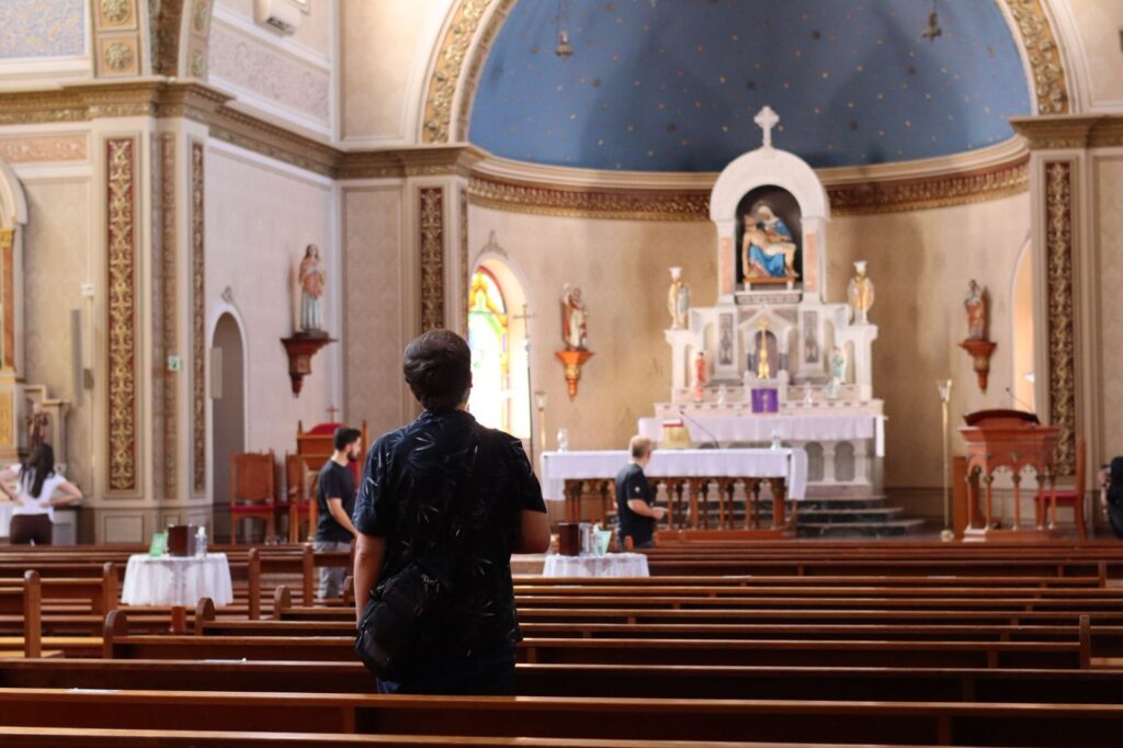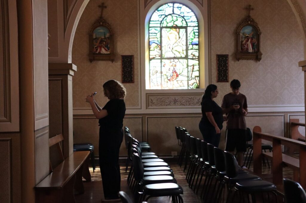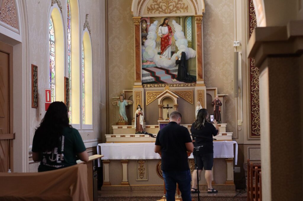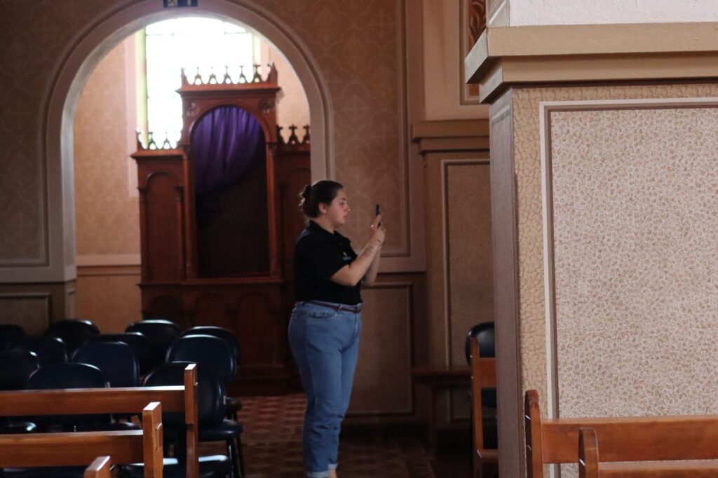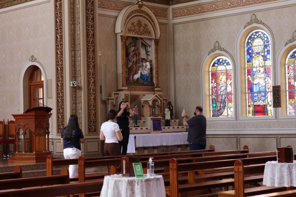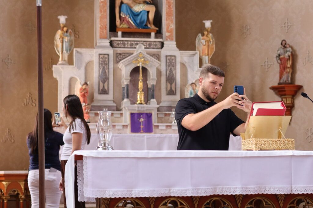 Após o momento formativo, os participantes seguiram para as dependências da Paróquia Nossa Senhora da Piedade para uma atividade prática de captação de imagens. Os comunicadores gravaram vídeos dentro da igreja e também em diferentes espaços ao redor, colocando em prática os conhecimentos apresentados durante a manhã.